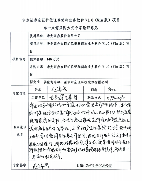 (十)任何供應(yīng)商、單位或個人對該項目采用單一來源采購方式有異議的,可以在公示期內(nèi)將書面意見反饋給華龍證券股份有限公司。
